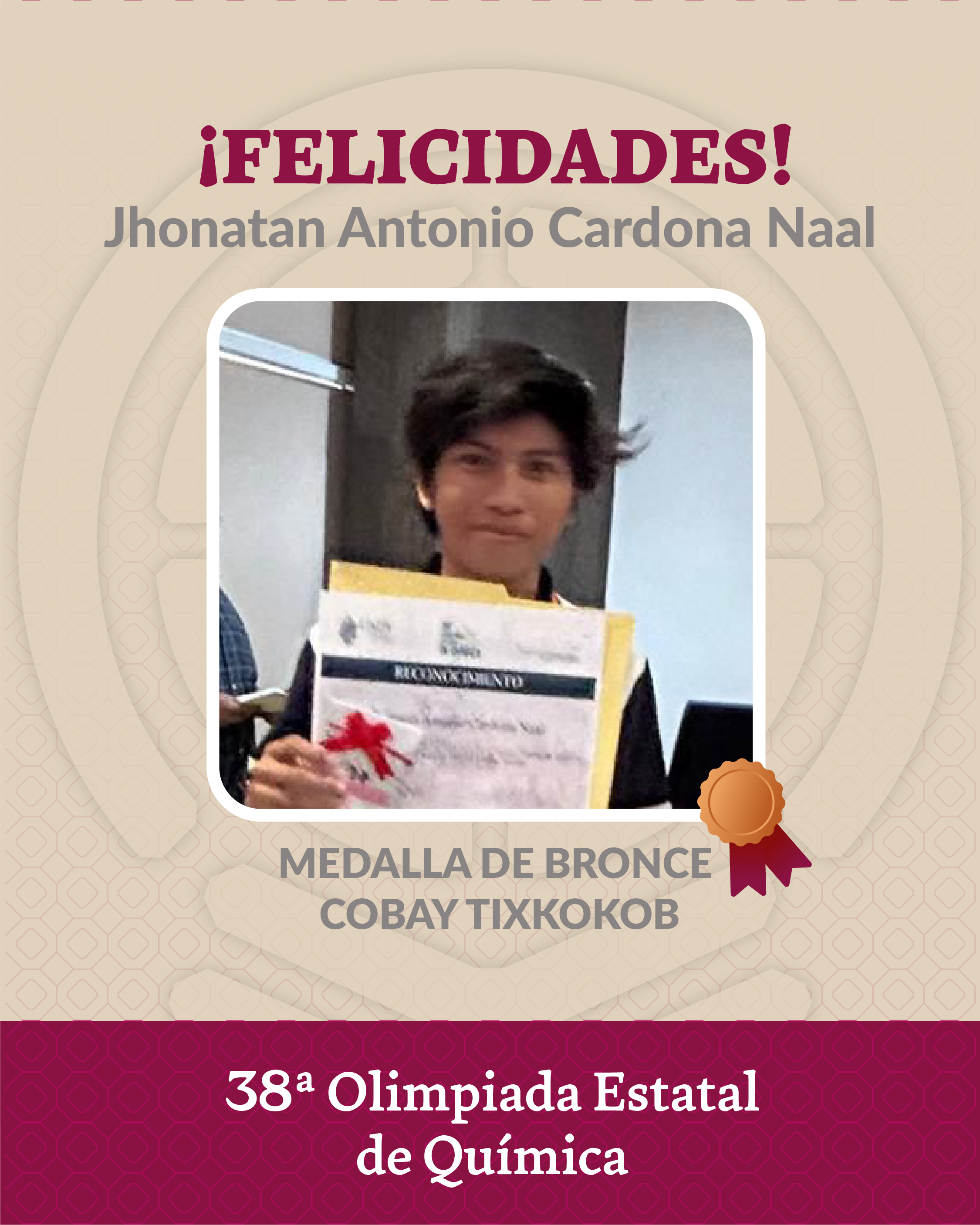 El Colegio de Bachilleres del Estado de Yucatán felicita a sus estudiantes por su destacada participación en la 38ª Olimpiada Estatal de Química.