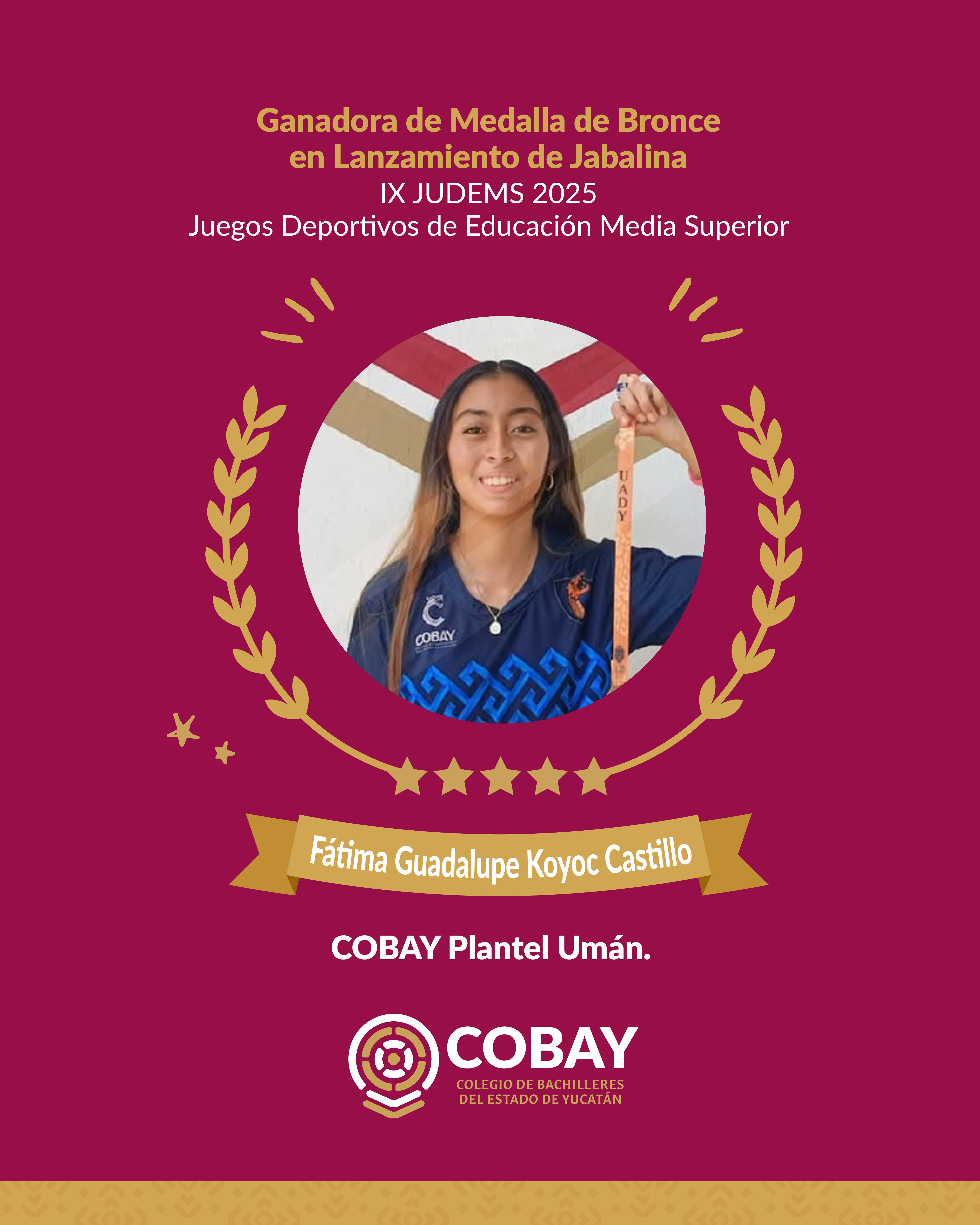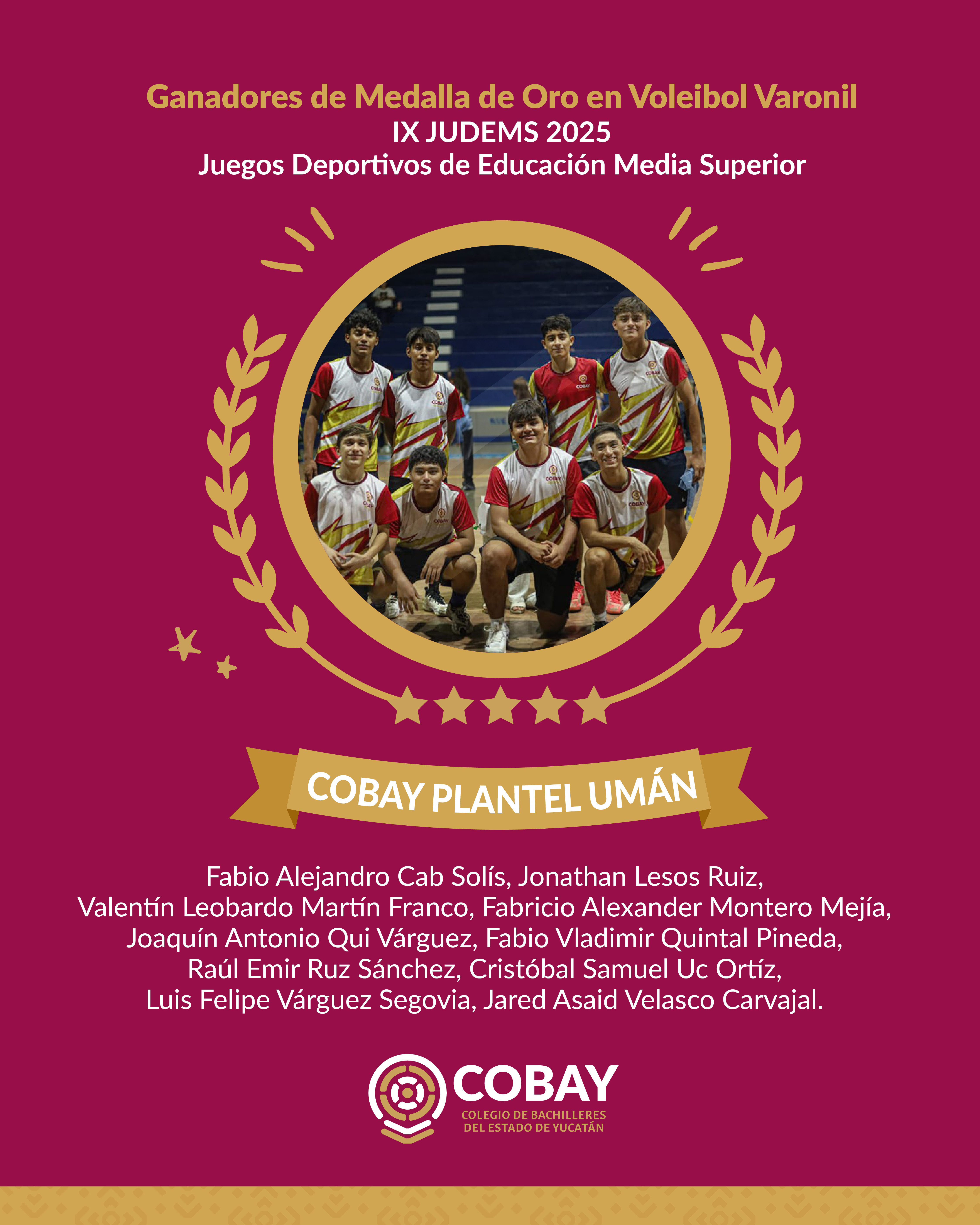 La Comunidad COBAY felicitamos con gran entusiasmo a nuestras y nuestros estudiantes del COBAY UMAN quienes brillaron en la IX JUDEMS 2025 – Juegos Deportivos de Educación Media Superior, demostrando talento, disciplina y compromiso.